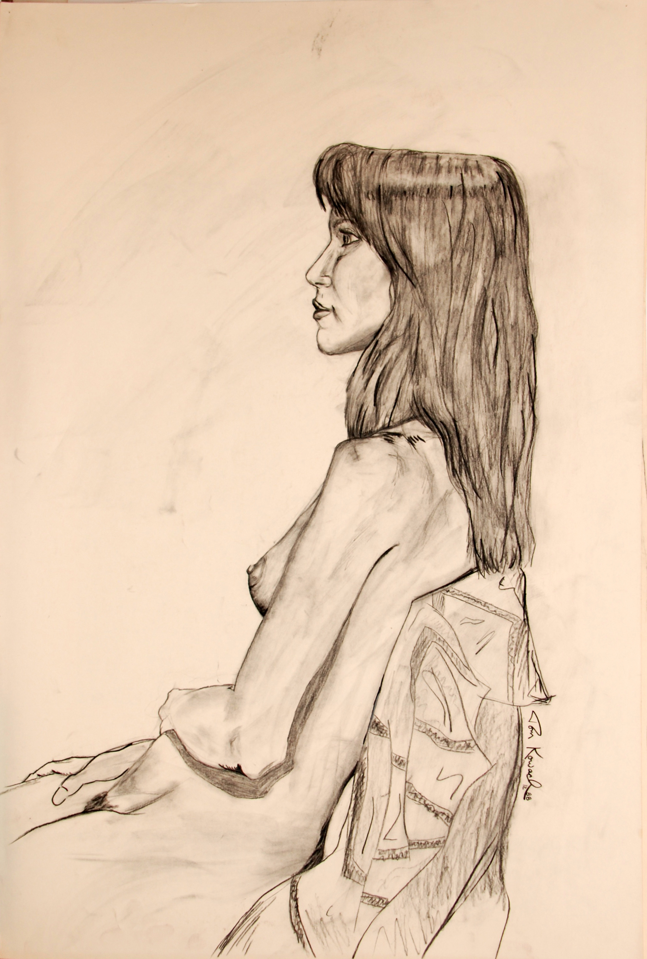A study completed during a life drawing class. A non-typical model that looked more like a regular college student.